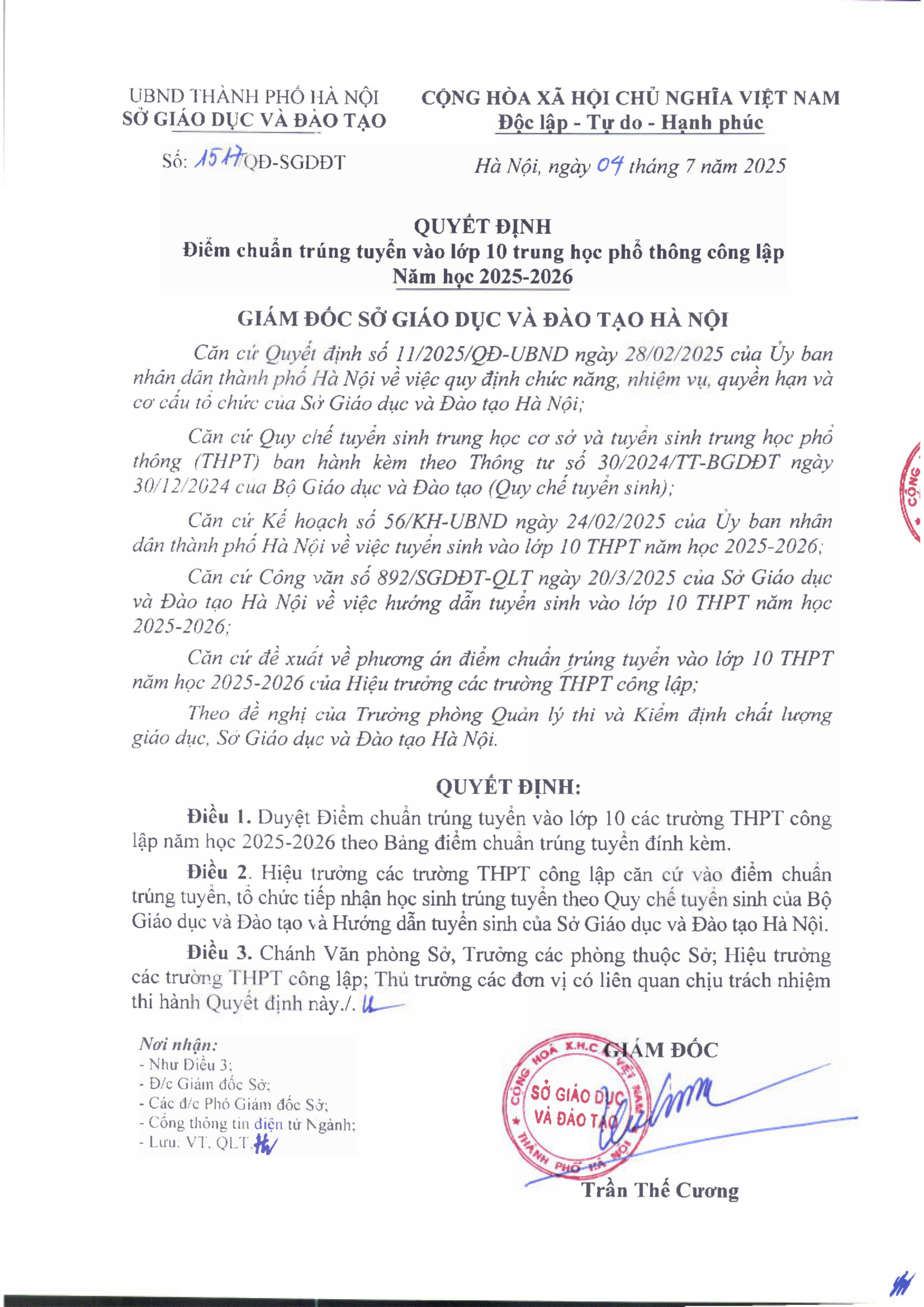 🏫 Ngày 04/7/2025, Sở Giáo dục và Đào tạo Hà Nội công bố Điểm thi vào lớp 10 trung học phổ thông năm học 2025-2026. Để giúp phụ huynh học sinh và học sinh thuận tiện tra cứu Điểm thi Sở Giáo dục và Đào tạo công bố các đường link truy cập như sau: